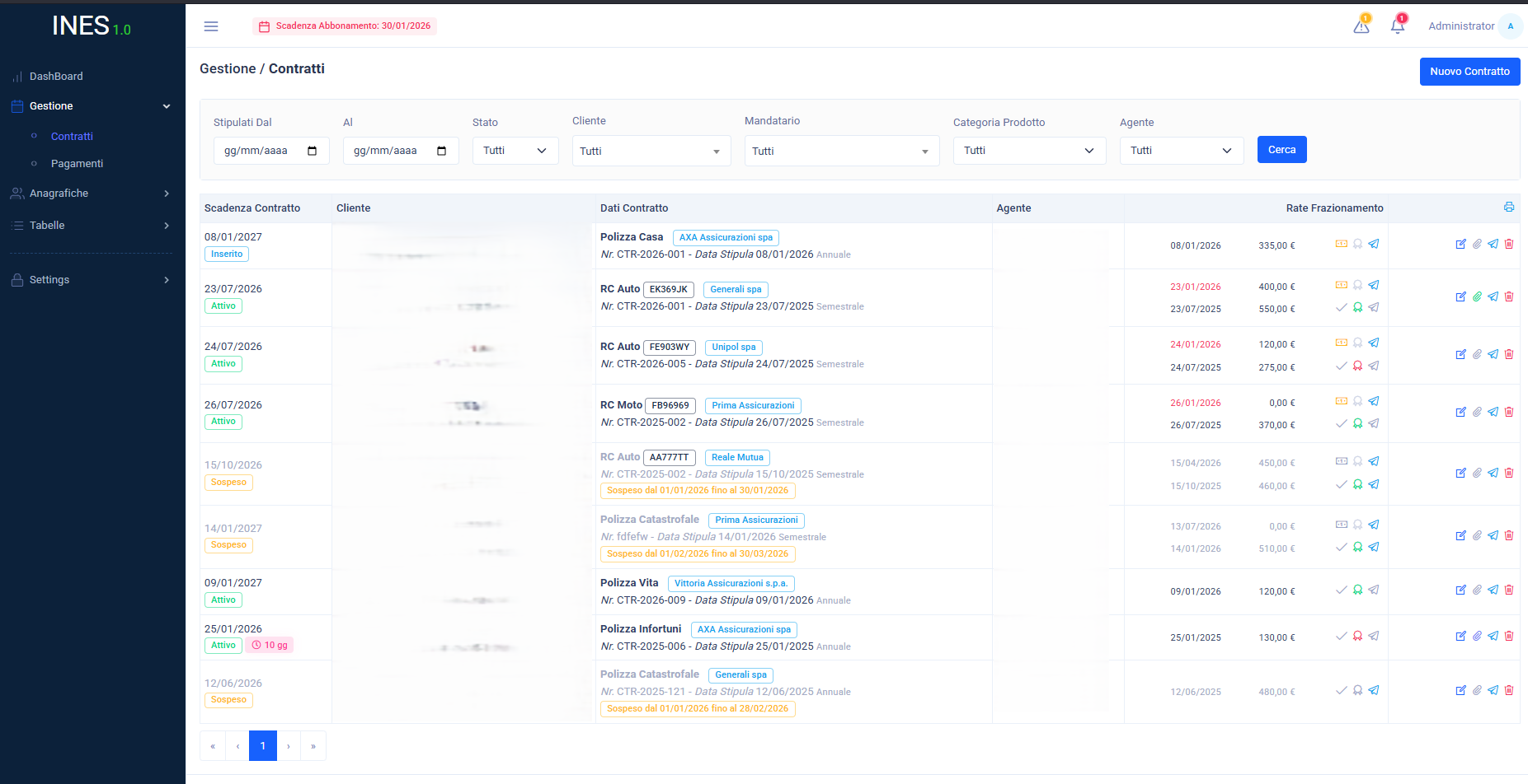 INES è un sistema gestionale web-based per l’operatività degli agenti/broker assicurativi plurimandatari: gestione di anagrafiche contratti, pagamenti,  e provvigioni